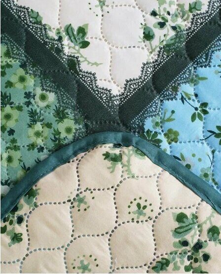 Верх покрывала – основной рисунок. нижняя часть – компаньон. Края обработаны шелковой бейкой.