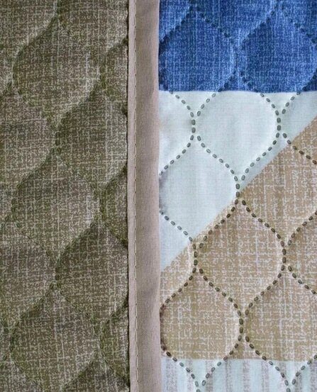Верх покрывала – основной рисунок. нижняя часть – компаньон. Края обработаны шелковой бейкой.