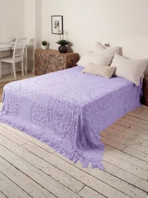 Покрывало махровое Узелочки с бахромой Сафия Хоум, фиолетовый
