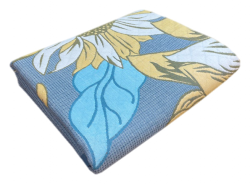 Покрывало п / лен КРУПНЫЕ ПОДСОЛНУХИ - бирюзовый