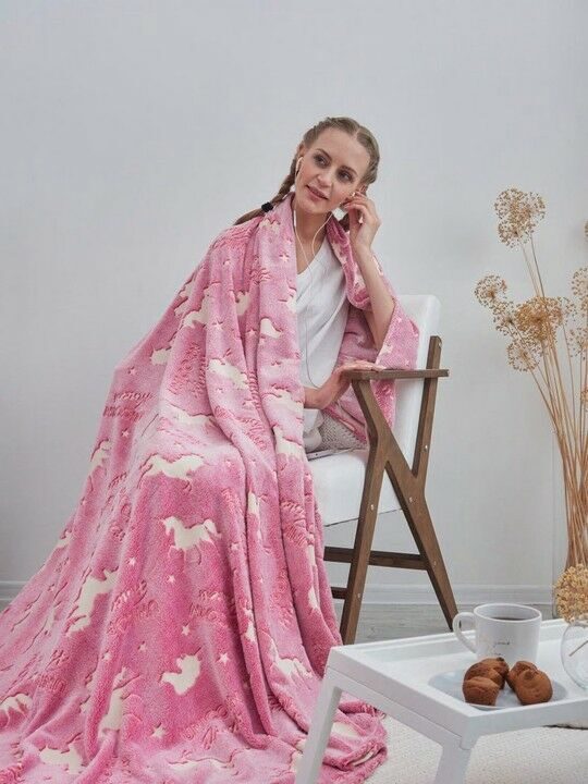 Покрывало-плед "Единороги"- светится в темноте!!! фланель-микрофибра 150*200 см.
