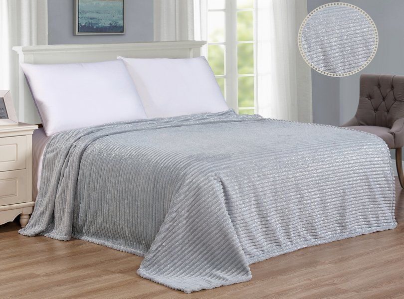 Покрывало-плед "Роскошь"-серый/серебро фланель жаккард 150*200 см.