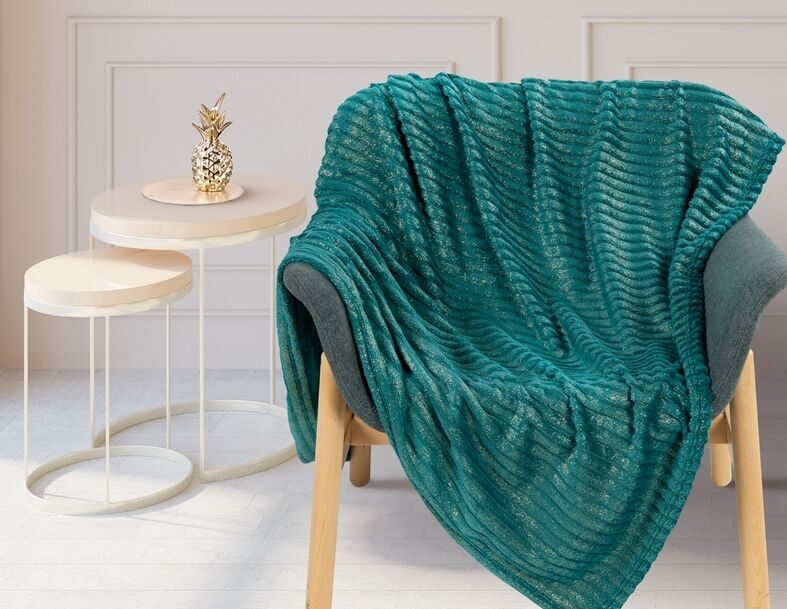 Покрывало "Роскошь"-изумруд/золото фланель жаккард 200*220 см.