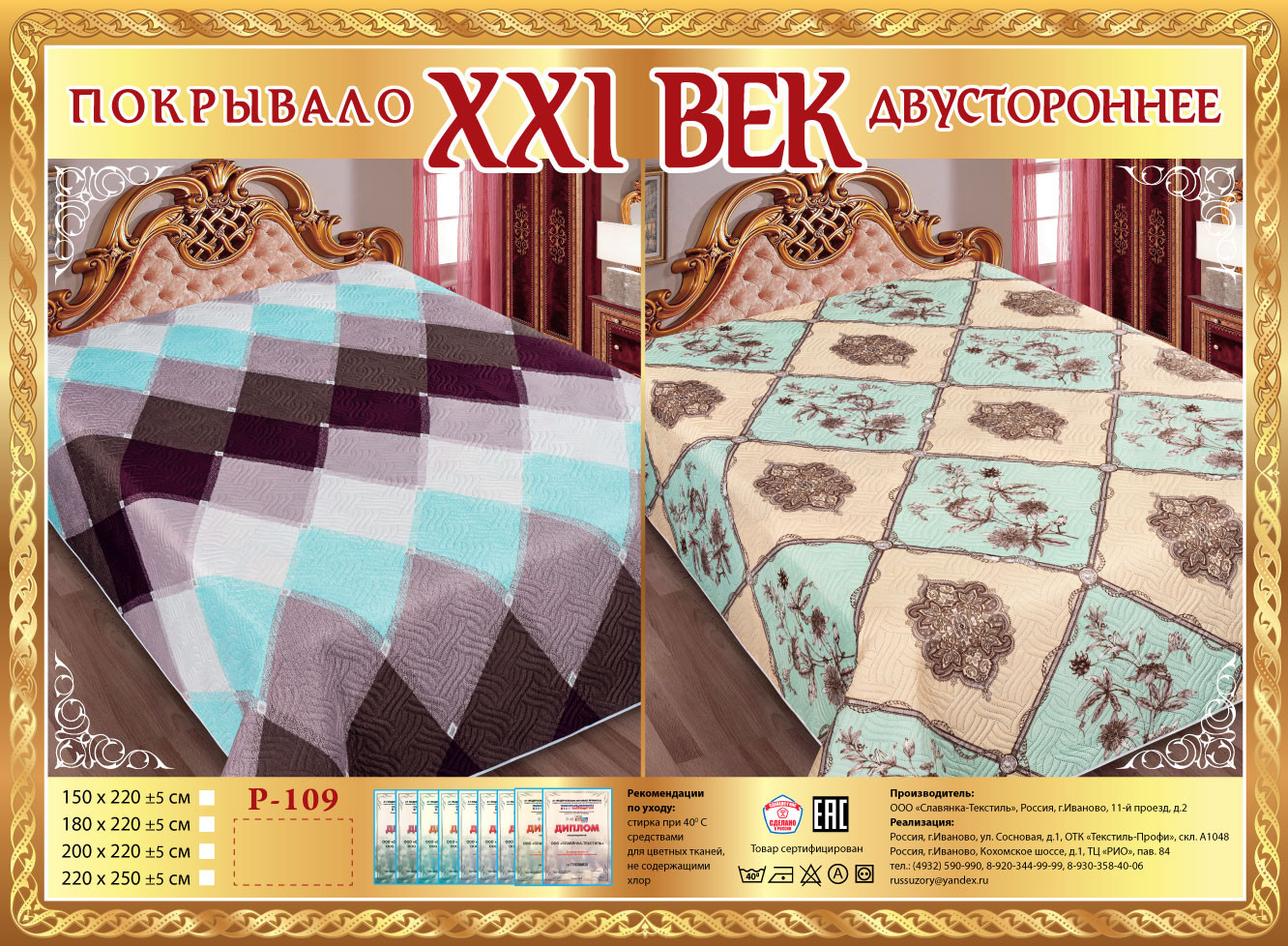 Покрывало сатин "21 век" двустороннее, в ассортименте (Р-109)
