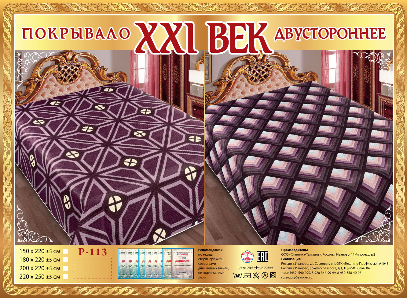 Покрывало сатин "21 век" двустороннее, в ассортименте (Р-113)