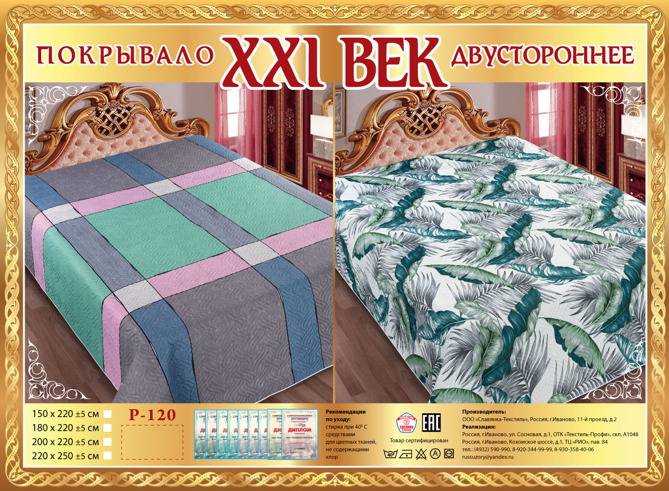 Покрывало сатин "21 век" двустороннее, в ассортименте (Р-120)