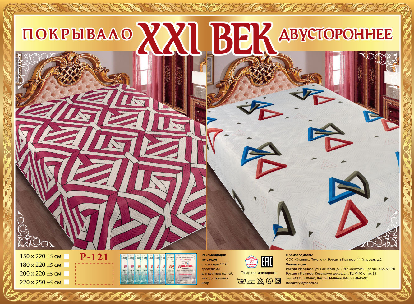 Покрывало сатин "21 век" двустороннее, в ассортименте (Р-121)