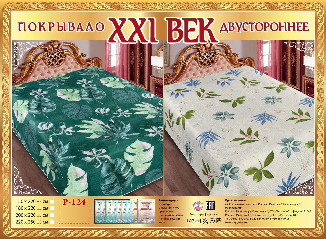 Покрывало сатин "21 век" двустороннее, в ассортименте (Р-124)