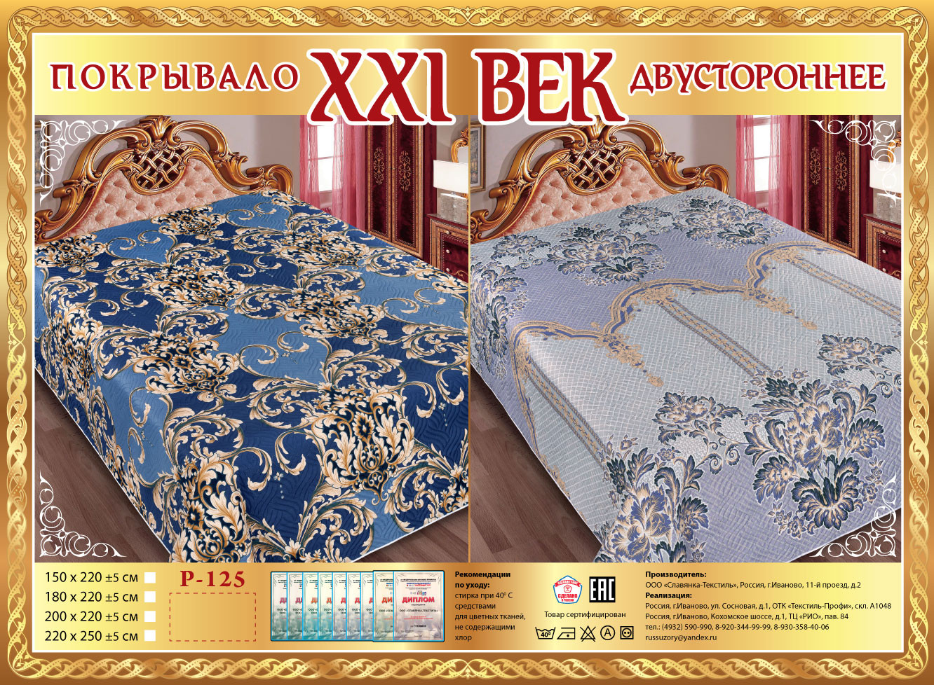 Покрывало сатин "21 век" двустороннее, в ассортименте (Р-125)