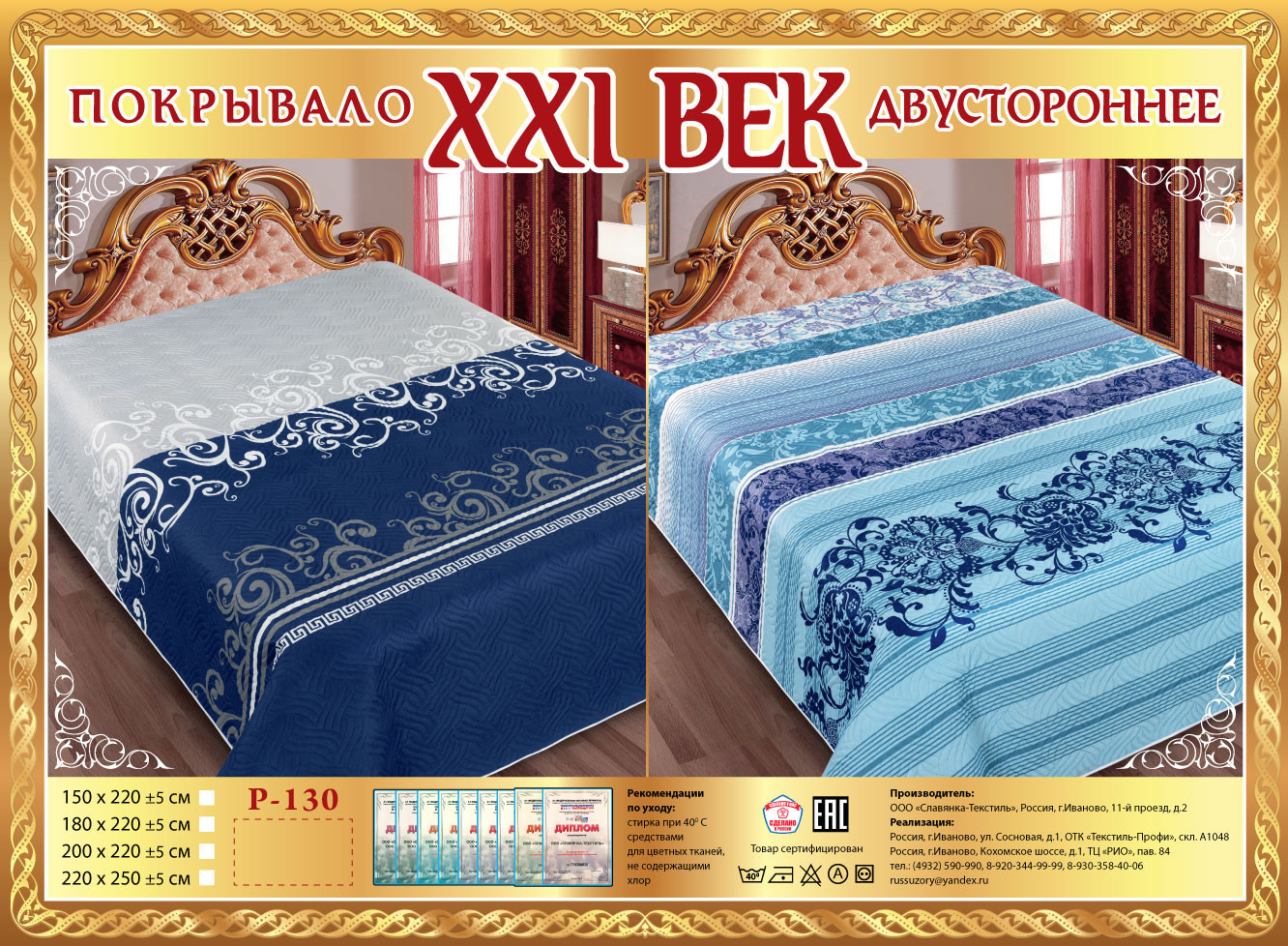 Покрывало сатин "21 век" двустороннее, в ассортименте (Р-130)