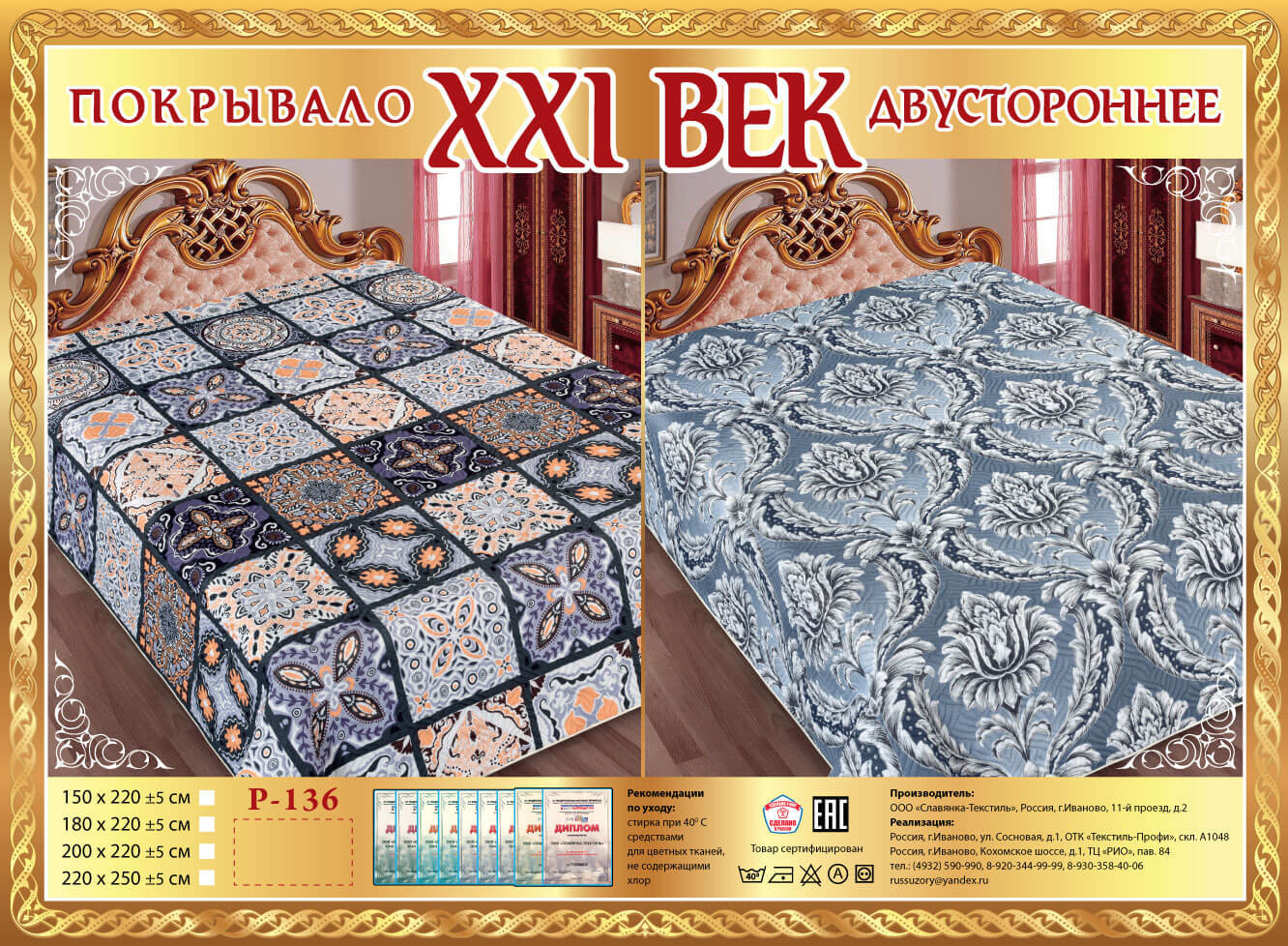Покрывало сатин "21 век" двустороннее, в ассортименте (Р-136)