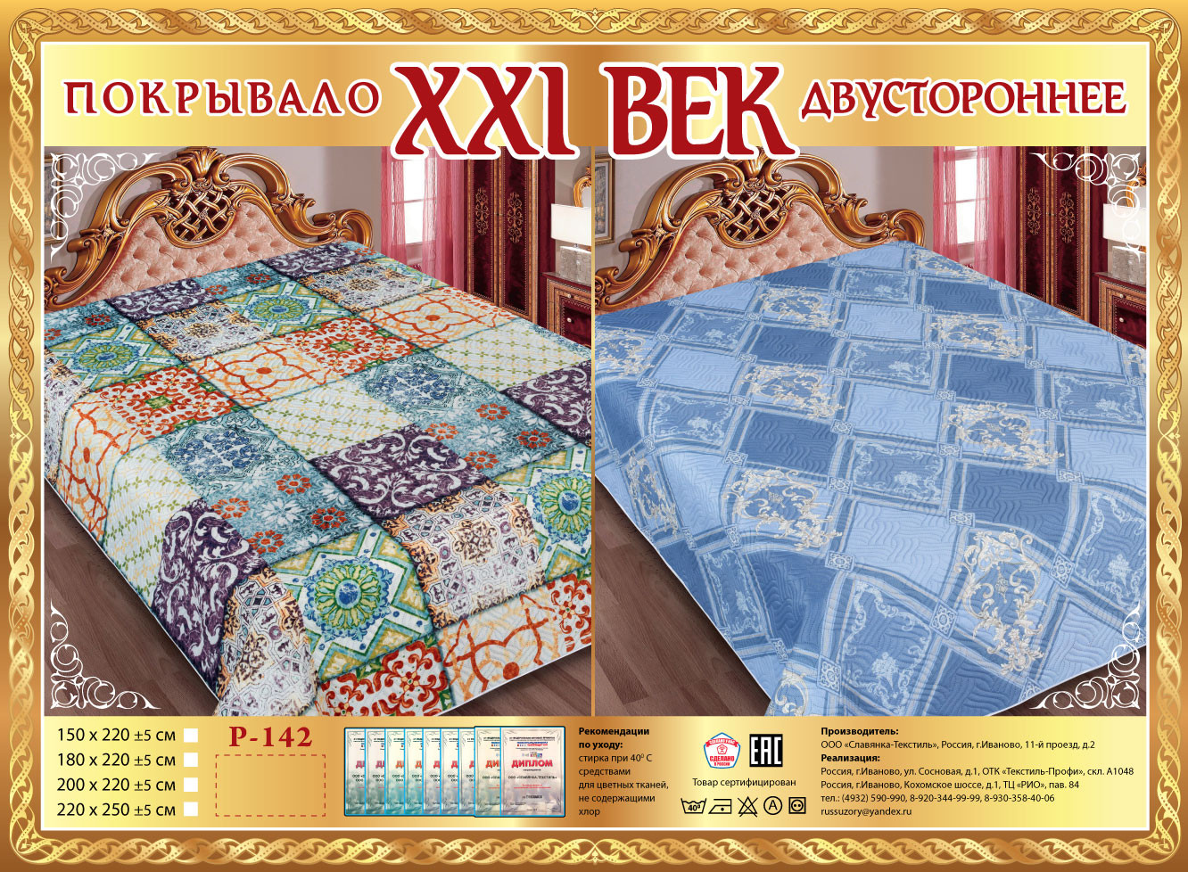 Покрывало сатин "21 век" двустороннее, в ассортименте (Р-142)