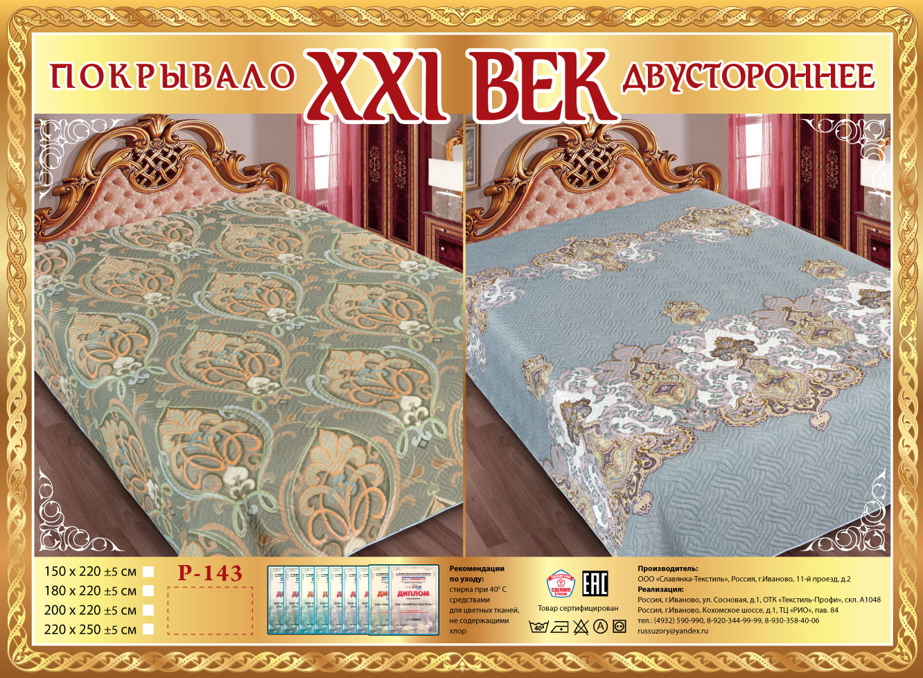 Покрывало сатин "21 век" двустороннее, в ассортименте (Р-143)