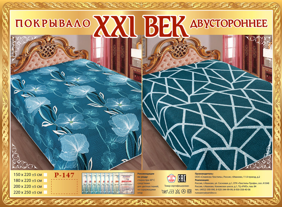Покрывало сатин "21 век" двустороннее, в ассортименте (Р-147)