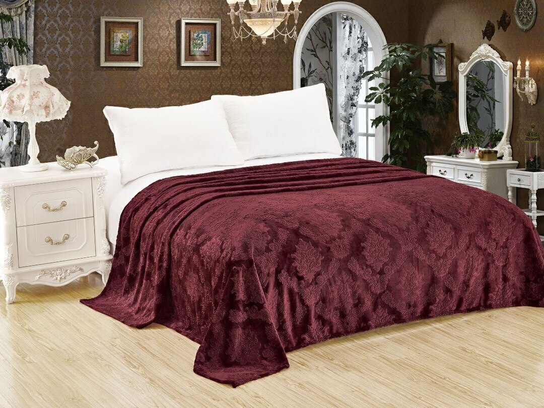 Плед однотонный жаккард в пакете Реноме, 002 вензель бордо