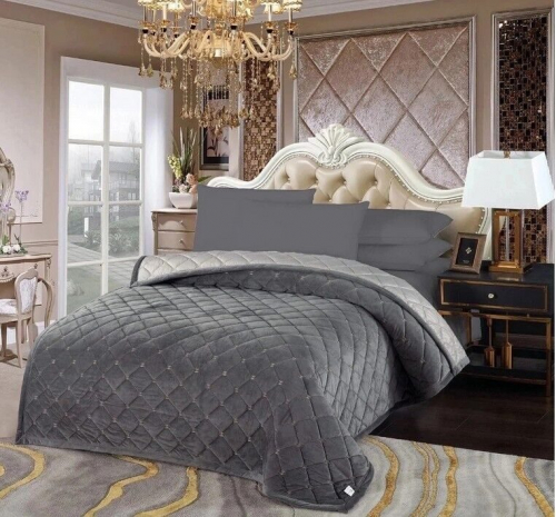 Велюровое стеганое покрывало Премиум "Ромбы-Hermes"-серый 220*240 см.