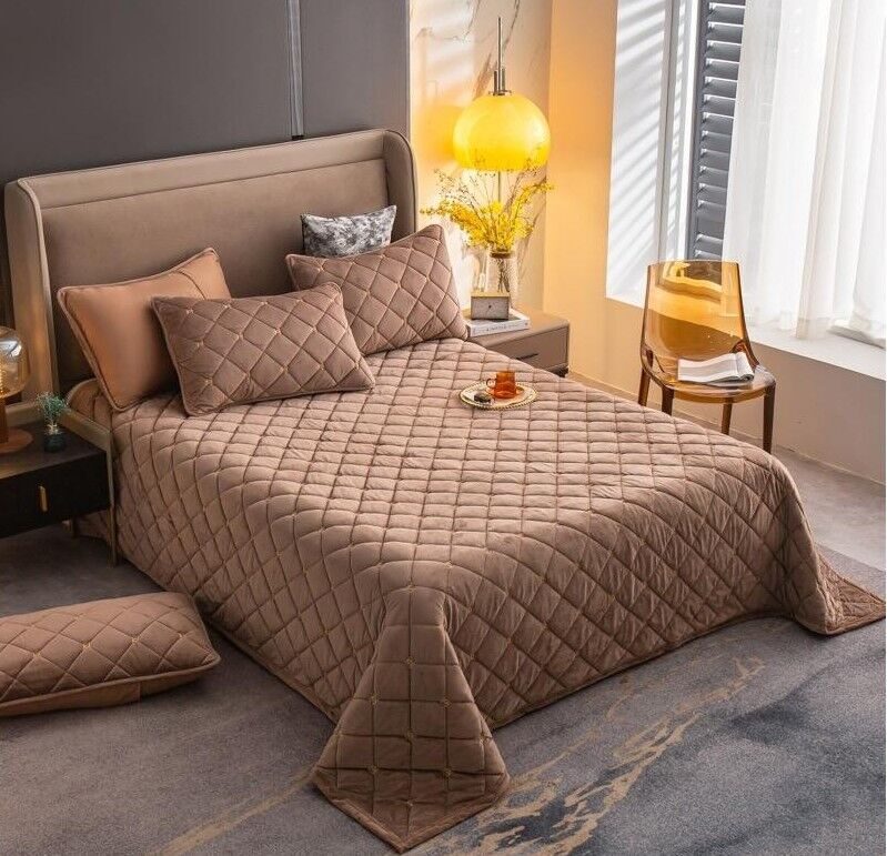 Велюровое стеганое покрывало Премиум "Ромбы-Шанель"-капучино 220*240 см.