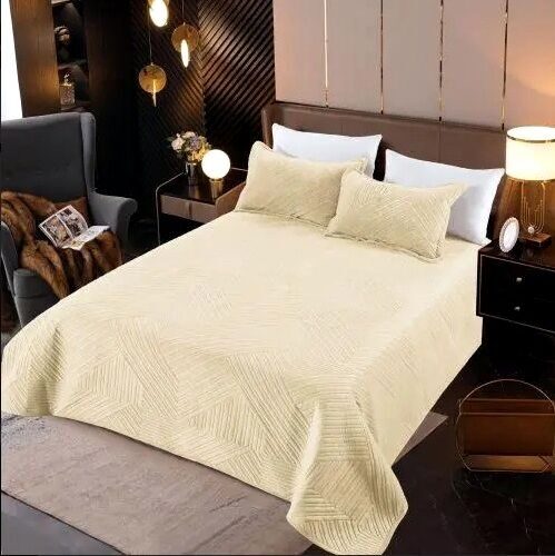 Велюровое стеганое покрывало Премиум "Шарм"-молочный 220*240 см.