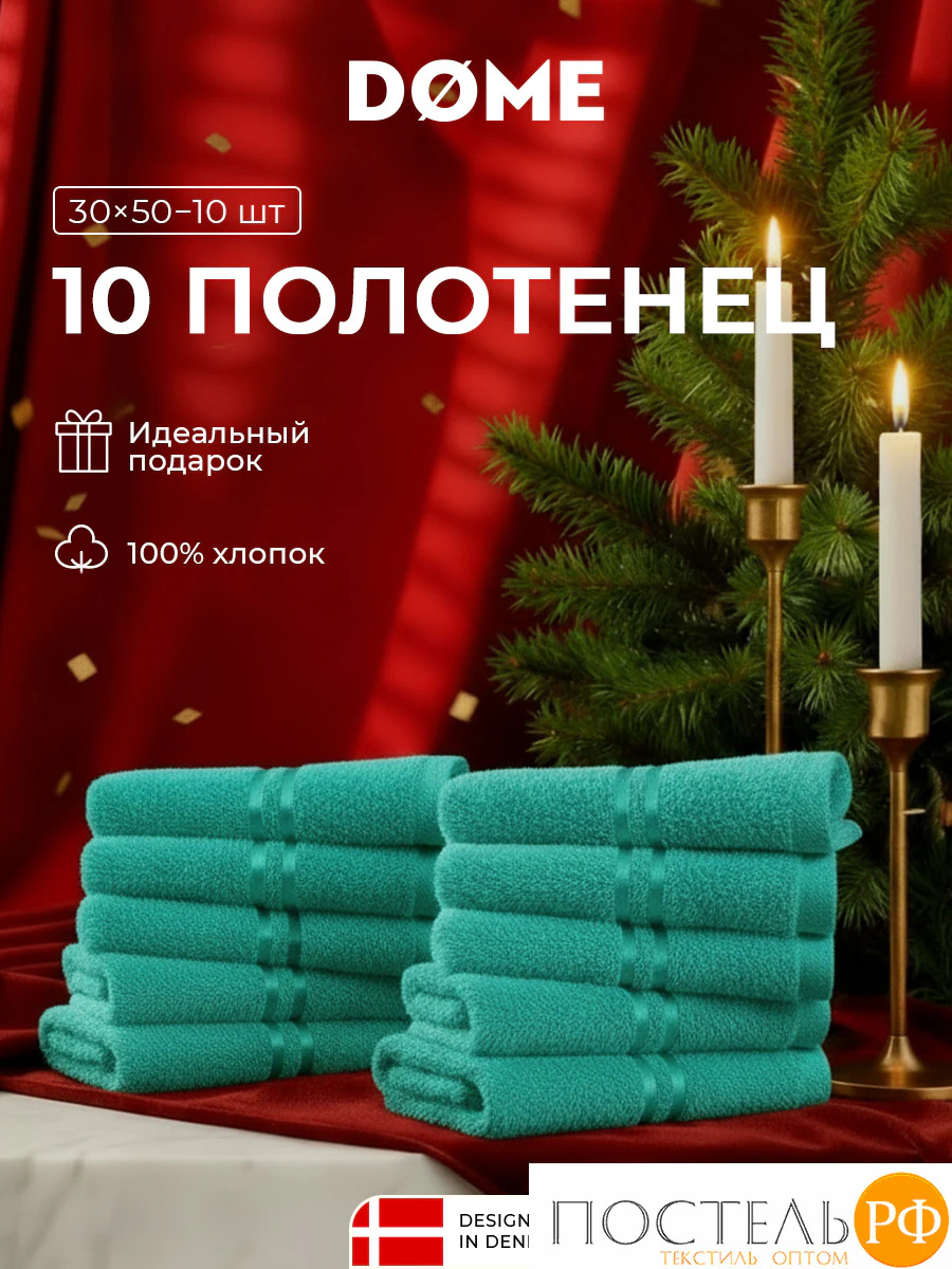 DOME ГАРМОНИКА изумр К-т Полотенец 30х50, 10 пр., 100% хл, 440 гр/м2