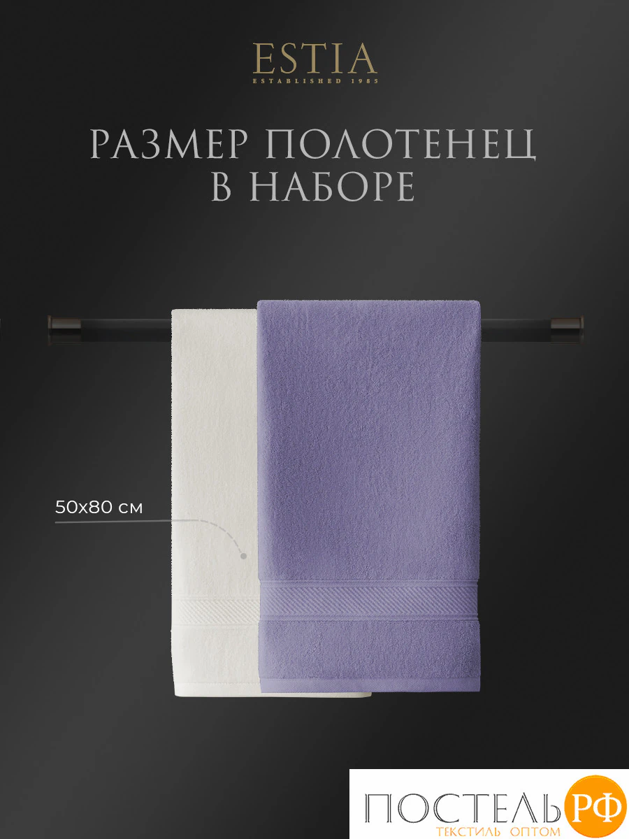 ESTIA МАРТОС экрю/сирен К-т полотенец 50х80-2/50х80-2, 100% хлопок, 500 г/м2
