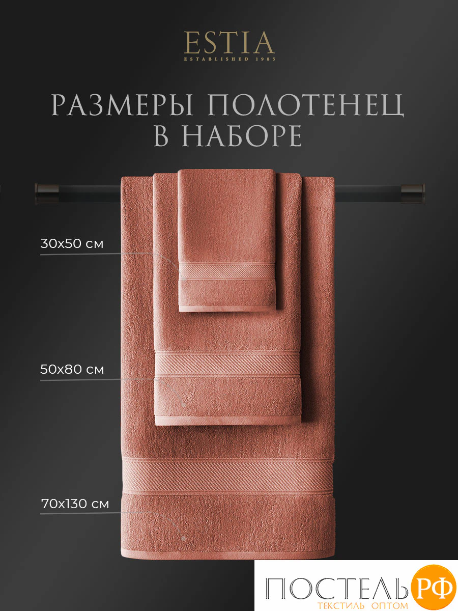 ESTIA МАРТОС коралл К-т полотенец 30х50-4/50х80-2/70х130-2, 100% хлопок, 500 г/м2