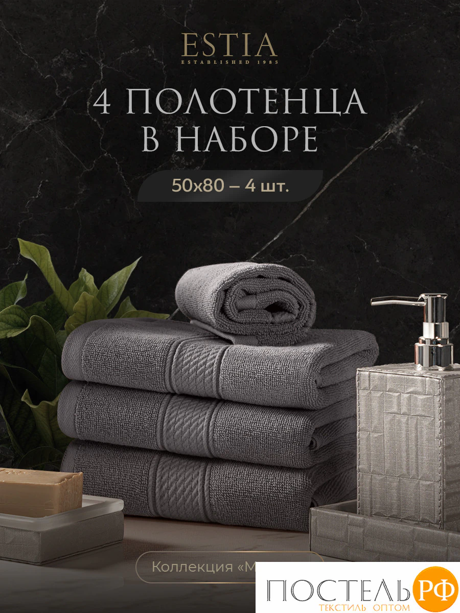 ESTIA МАРТОС св-сер К-т полотенец 50х80-4, 100% хлопок, 500 г/м2
