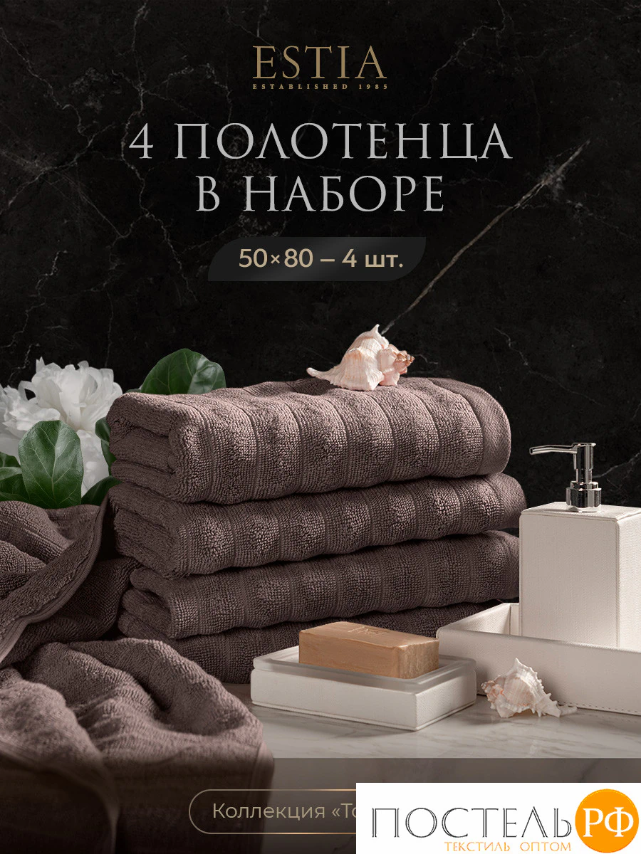 ESTIA ТОРЛЕЙ беж-сер К-т полотенец 50х80-4, 100% хлопок, 500 г/м2