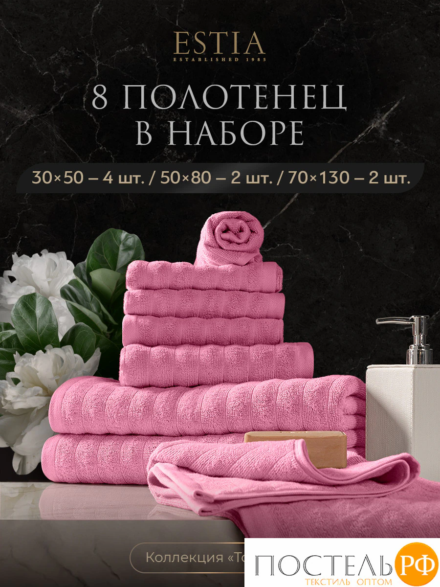 ESTIA ТОРЛЕЙ роз К-т полотенец 30х50-4/50х80-2/70х130-2, 100% хлопок, 500 г/м2