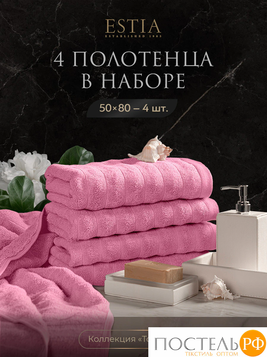 ESTIA ТОРЛЕЙ роз К-т полотенец 50х80-4, 100% хлопок, 500 г/м2