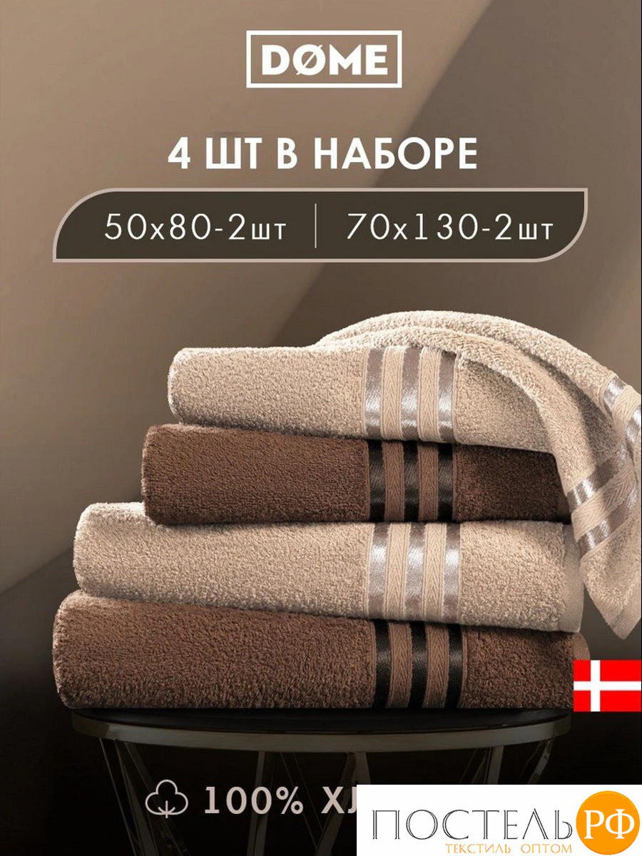 ГАРМОНИКА беж/кофе К-т Полотенец 50х80-2/70х130-2, 4 пр., 100% хл, 440 гр/м2