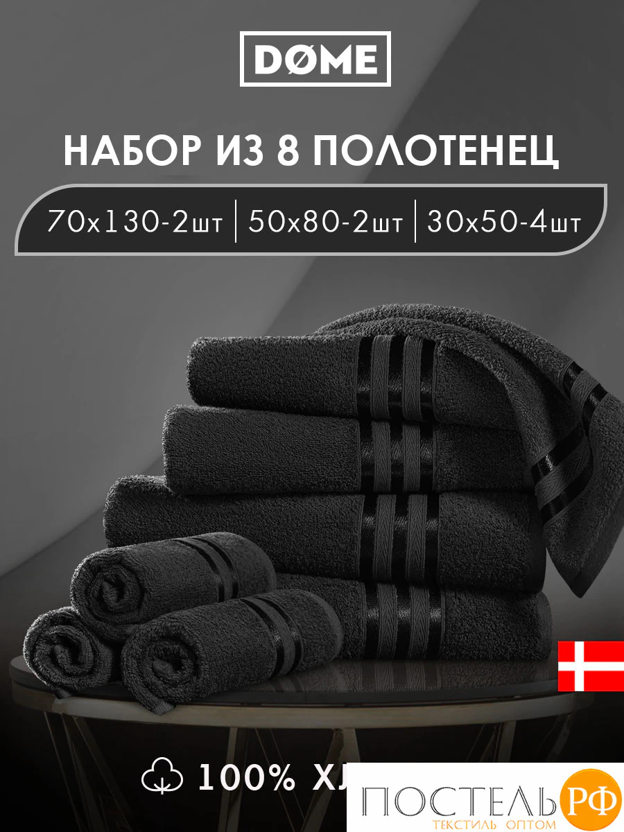 ГАРМОНИКА черн К-т Полотенец 30х50-4/50х80-2/70х130-2, 8 пр., 100% хл, 440 гр/м2