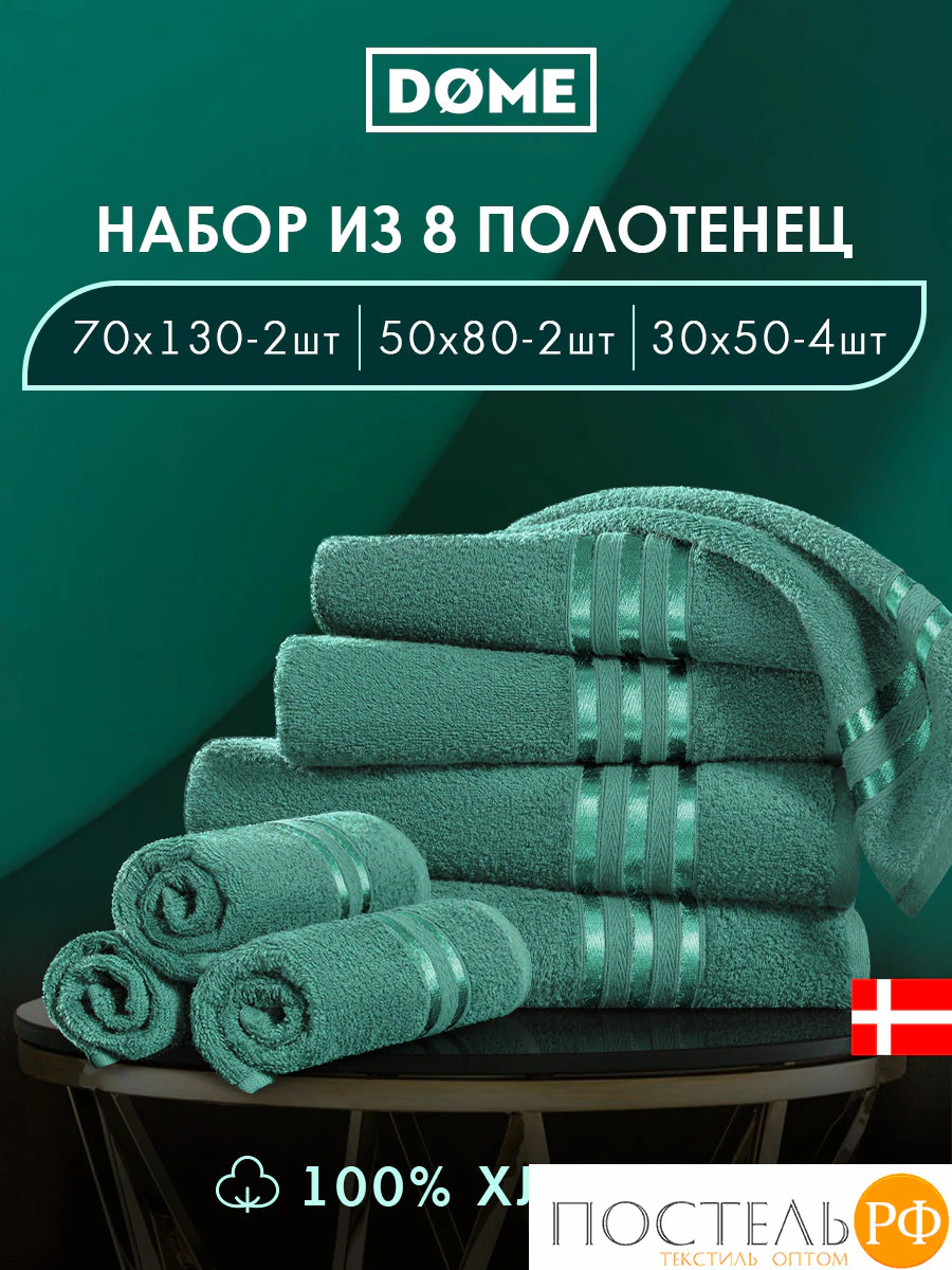 ГАРМОНИКА изумр К-т Полотенец 30х50-4/50х80-2/70х130-2, 8 пр., 100% хл, 440 гр/м2