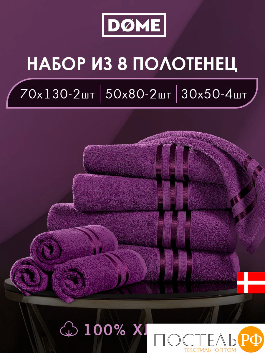 ГАРМОНИКА пурпур К-т Полотенец 30х50-4/50х80-2/70х130-2, 8 пр., 100% хл, 440 гр/м2