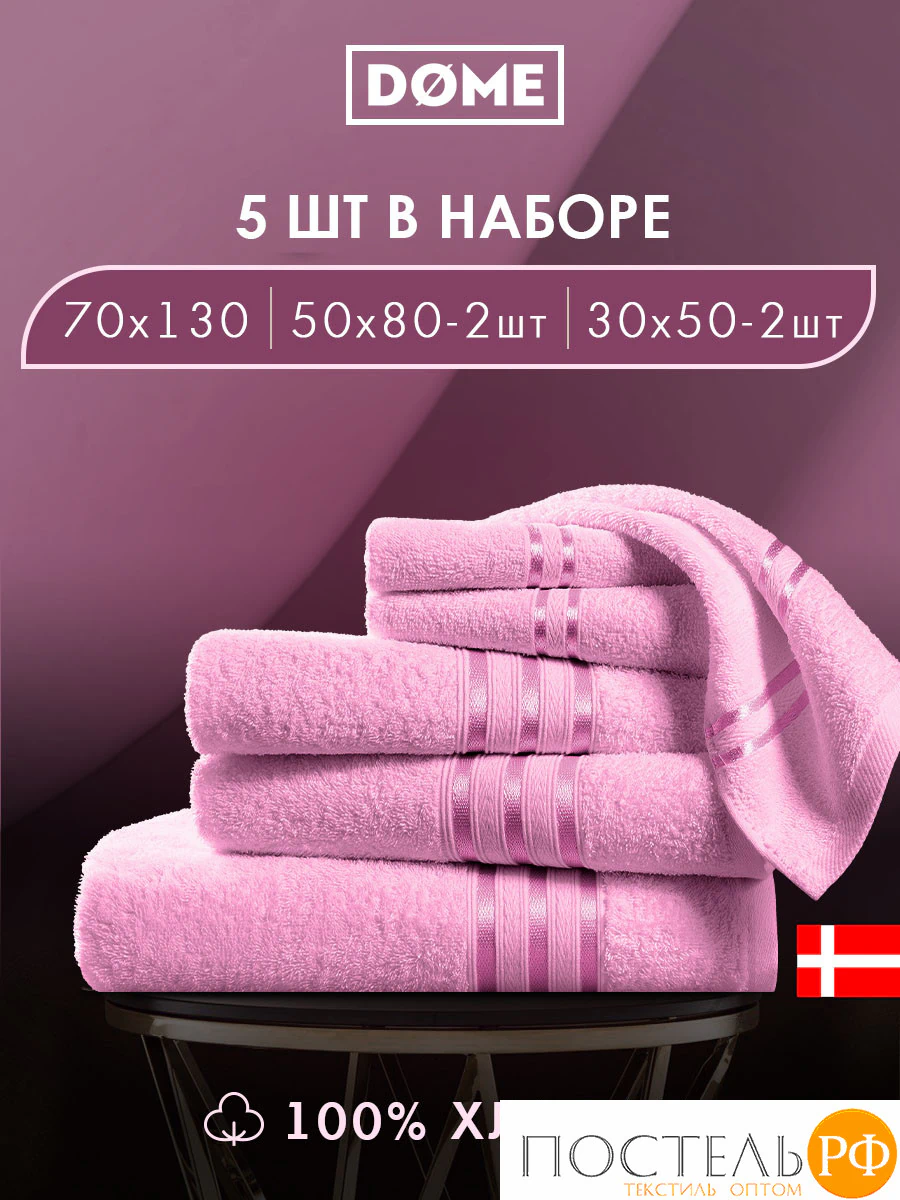 ГАРМОНИКА роз К-т Полотенец 30х50-2/50х80-2/70х130, 5 пр., 100% хл, 440 гр/м2
