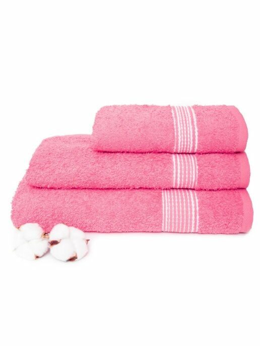 Набор махровых полотенец "Трио"-розовый 3 шт (40*70 см, 50*90 см,70*130 см) в индив. упак. хлопок 100%