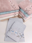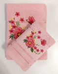 Махровое полотенце "8 МАРТА-РОЗЫ"- ЗЕЛЕНЫЙ 70*140 см. хлопок 100%