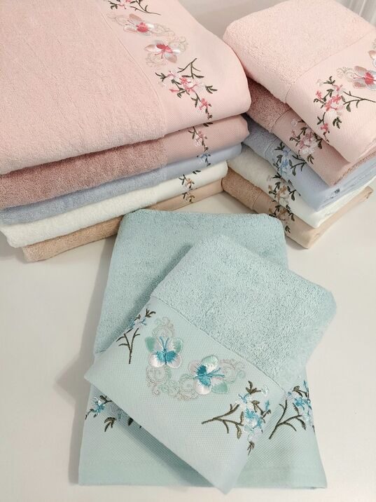 Махровое полотенце "Бабочки"-МЯТА 70*140 см. хлопок 100%