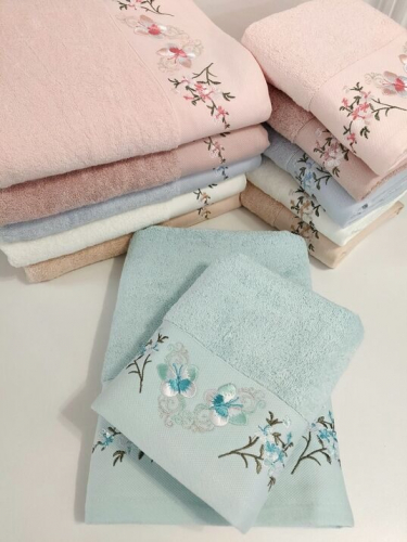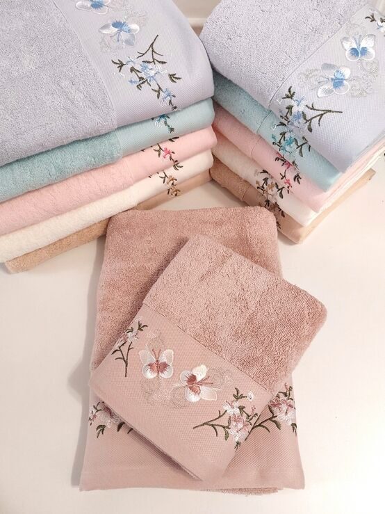 Махровое полотенце "Бабочки"-ПУДРА 70*140 см. хлопок 100%