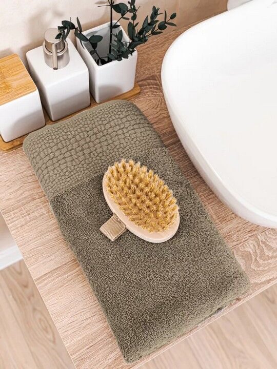 Коллекция однотонных полотенец с жаккардовым бордюром в ЭКО-стиле.