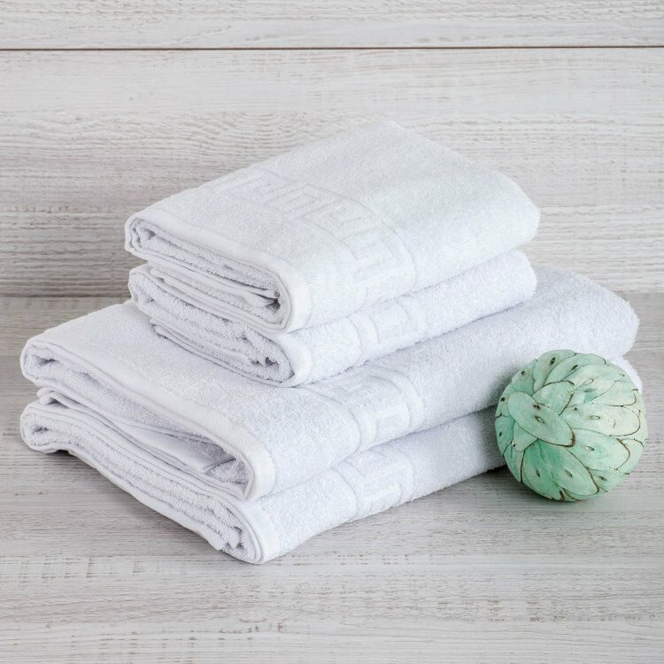 Махровое полотенце "Греческий бордюр"-белый 50*90 см. хлопок 100%