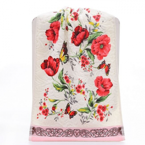 Махровое полотенце "Маки"- ОРАНЖЕВЫЙ 35*75 см. с карабином хлопок 100%