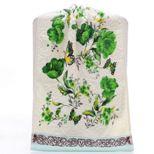 Махровое полотенце "Маки"- ЗЕЛЕНЫЙ 35*75 см. с карабином хлопок 100%
