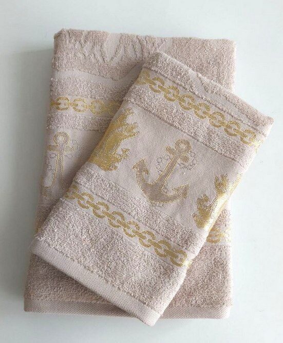 Махровое полотенце "Морское"- БЕЖЕВЫЙ 50*90 см. хлопок 100%