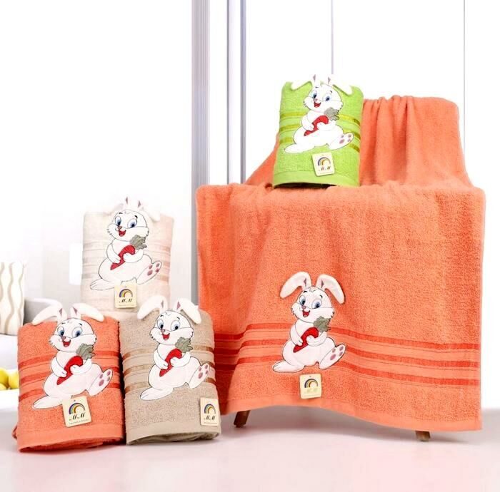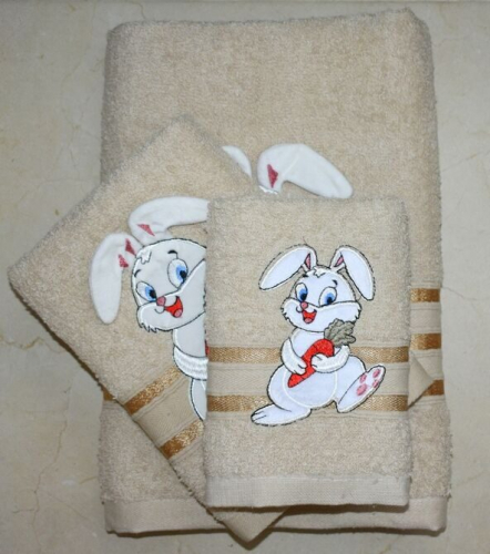 Махровое полотенце "Зайка с морковкой"- МОЛОЧНЫЙ 70*140 см. хлопок 100%