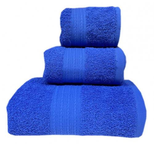 Набор махровых полотенец КОСИЧКА 3 пр - синий