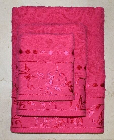 Набор махровых полотенец жаккард "Подарочный"-фуксия 3 шт (40*70 см, 50*90 см,70*130 см) в индив. упак. хлопок 100%