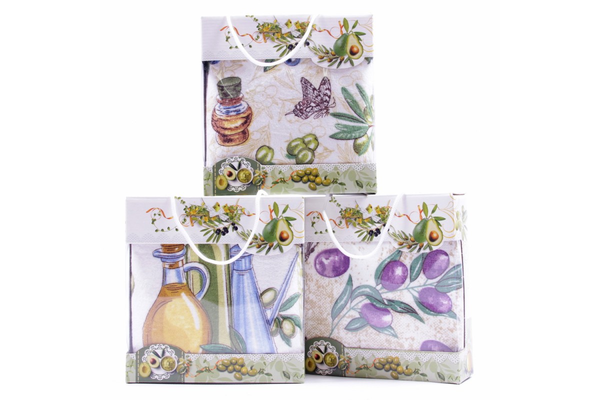 Набор полотенца микрофибра "Оливковый рай" Y05A в сумочке Р придаст яркости и стиля любому помещению - будь то кухня или ванная комната! Помимо комфорта и удобства пользования, такие полотенца быстро и качественно справятся со всеми задачами и без труда поднимут Вам настроение. А благодаря красивой праздничной упаковке – это готовый, прекрасный подарок близкому человеку!