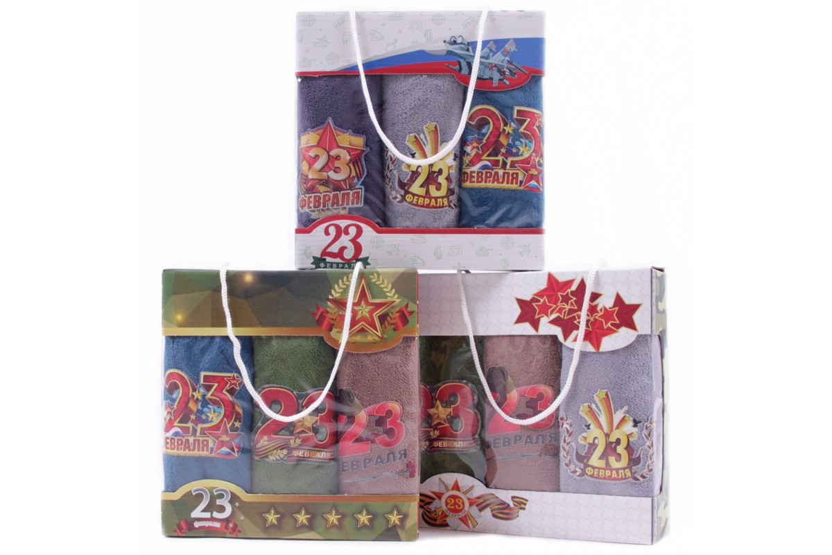 Набор полотенец из микрофибры 23004 в сумочке 23 февраля Р+Р+Р из Иваново