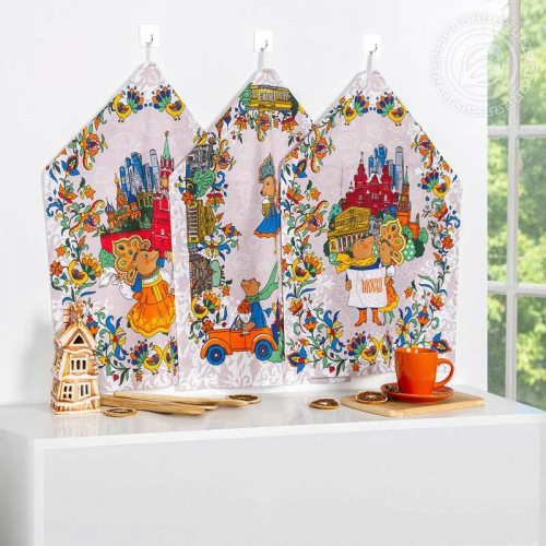 Набор полотенец из рогожки Московские мишки (45х60 см, 3 шт.) АРТ-Дизайн