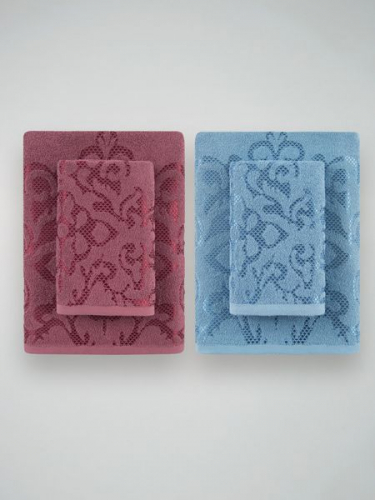 Набор полотенец махровых - 4 шт Diana Пейсли (Вишня/Темно голубой) Гутен Морген